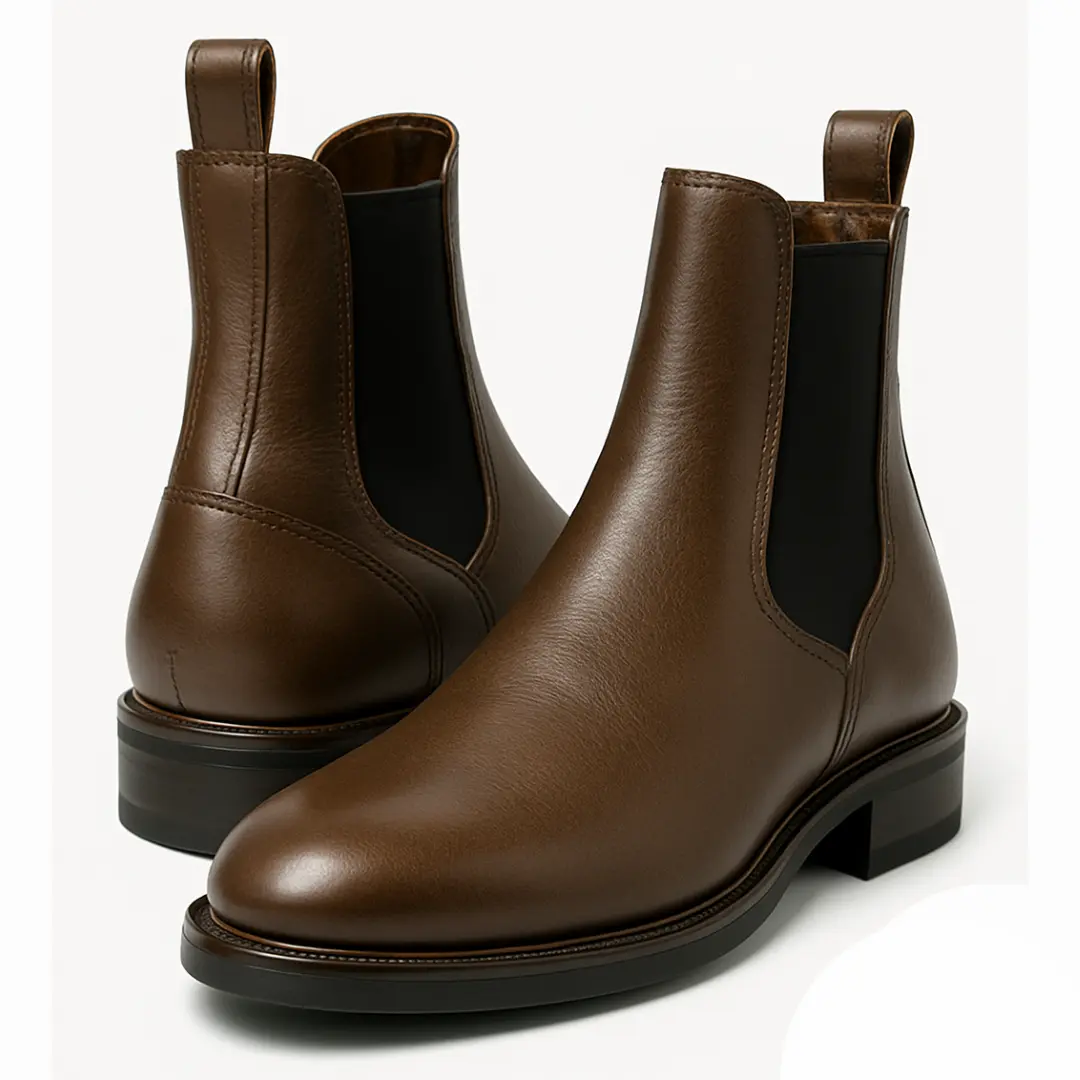 These boots look high-end because of the smooth leather finish. They go great with jeans, chinos, and dress pants. These brown Chelsea boots are great for work, events, or weekend outfits. They are comfortable and give you confidence with every step.